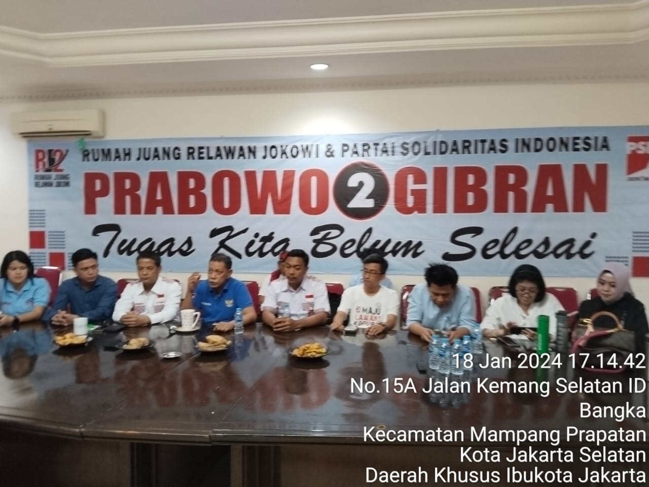 Paslon Prabowo-Gibran yang sudah sangat jelas akan melanjutkan program kerja Presiden Jokowi yang saat ini maju dalam kontestasi Pilpres 2024, kami para relawan mendukung penuh dengan gerakan- gerakan yang kami lakukan ke seluruh pelosok Nusantara dengan rumah rumah Juang yang ada di daerah- daerah di Indonesia.