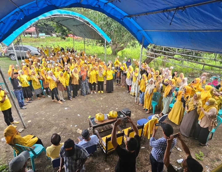 Sejumlah Kelompok tim srikandi (perempuan red) dan tokoh masyarakat, di Kelurahan Bontokamase Kecamatan Somba Opu Gowa, yang hadir bertempat di rumah orang tua Hj. Hamsiah Iksan, Mallingkai Maknun, untuk sosialisasi bersama pilcaleg DPR RI nomor 2 di usung Partai Golkar, optimis bersatu memenangkan Hj Hamsiah Iksan di