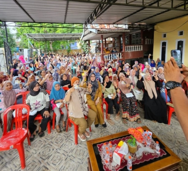 Nampak terlihat kelompok perempuan dan toko masyarakat antusiasme ikut hadir sosialisasi dan silaturahmi dengan Calon Legislatif (Caleg) DPR RI, Hj Hamsiah Iksan.
