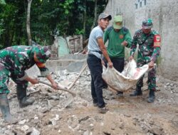 Babinsa Koramil 14/Panongan Gotong Royong Bongkar Rumah Warga Binaan.