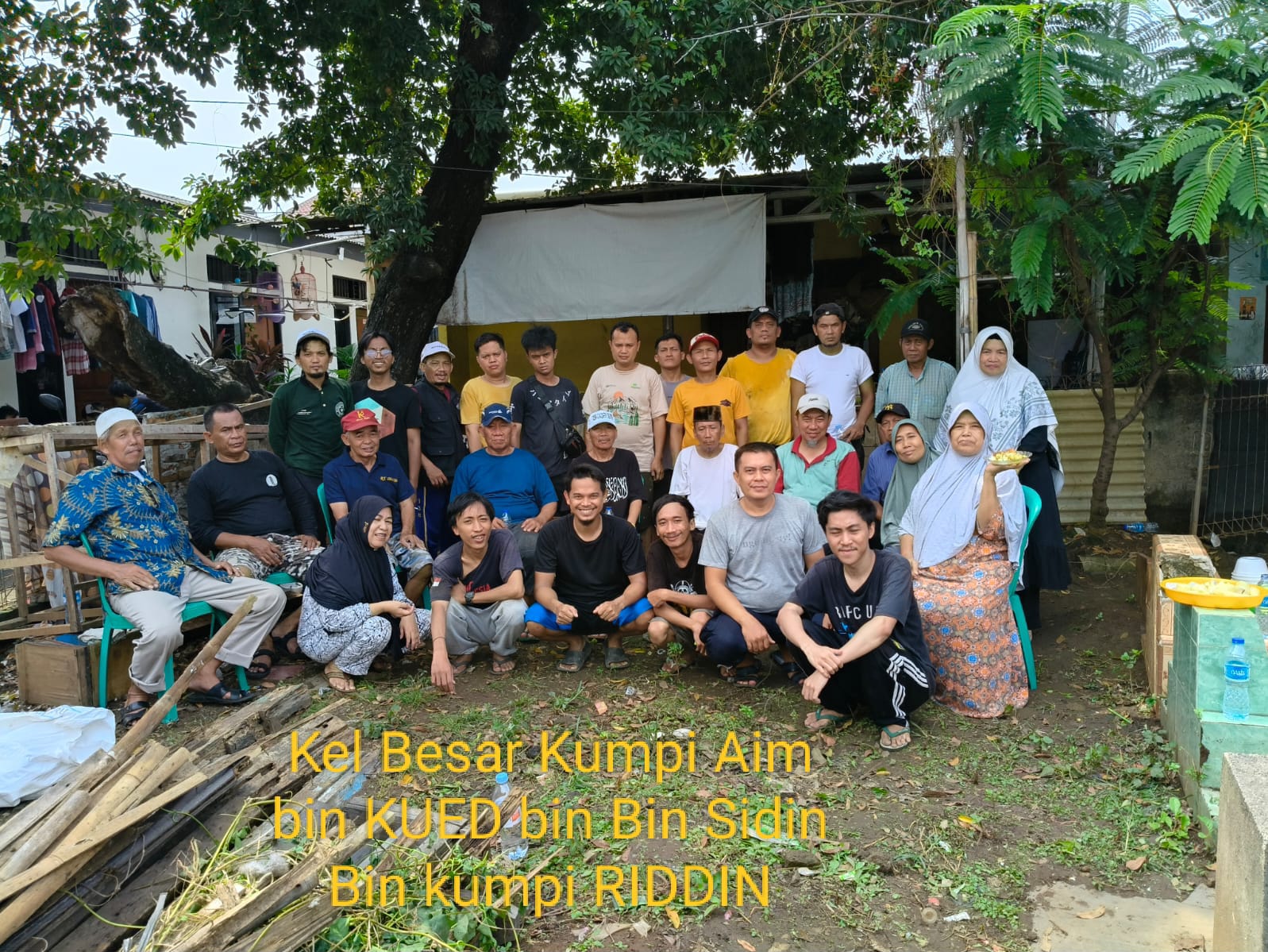 berkumpul keluarga besar dengan tujuan jelas ingin mempersatukan kembali dan mengeratkan kebersamaan dalam satu perkumpulan keluarga yang mana semua yang berkumpul saat ini adalah anak cucu cicit dari Almarhum baba Aim bin KUED .