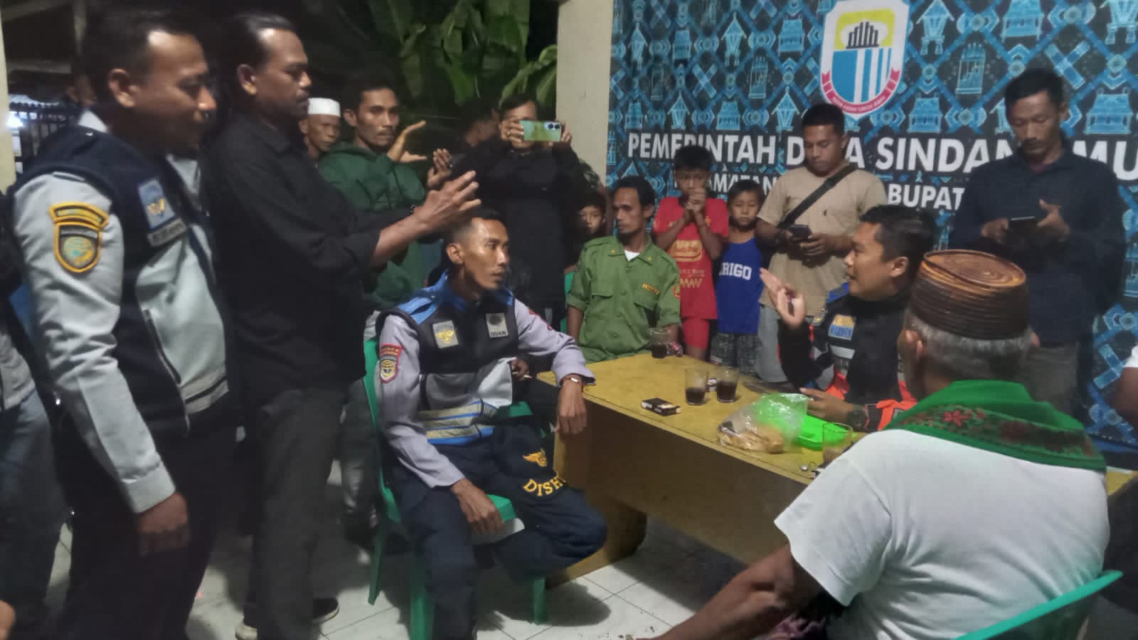 Puluhan warga berkumpul di pertigaan Jalan Cijalur, Desa Sindangmulya, Kecamatan Maja, untuk menyampaikan penolakan mereka kepada petugas Dishub yang berjaga di lokasi.