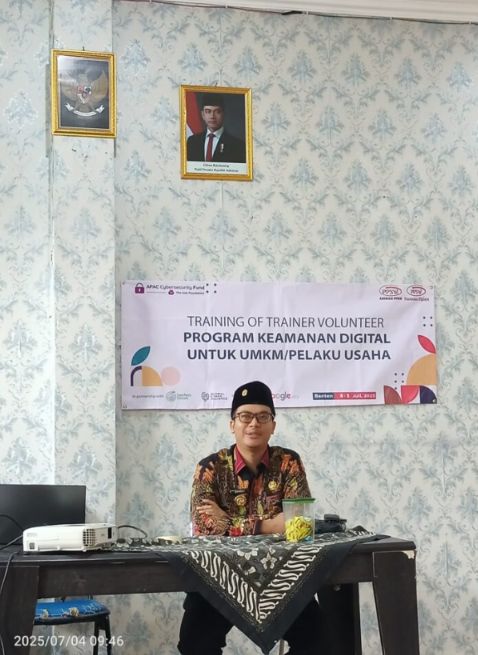Serang 4-7-2024 Guna memperkuat literasi digital di kalangan pelaku Usaha Mikro Kecil dan Menengah (UMKM), Pemerintah Desa Sinangheula menggelar kegiatan Training of Trainer (ToT) Volunteer Program Keamanan Digital digelar pada Jumat (4/7/2025) di Aula Kantor Desa Sindangheula, Kecamatan Pabuaran, Kabupaten Serang.
