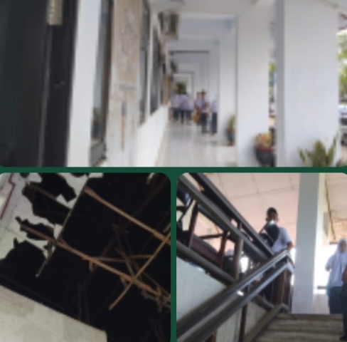 “Pertama, plafon yang rusak dan bisa jatuh kapan saja. Kedua, atap yang bocor saat hujan yang sangat mengganggu proses pembelajaran. Ketiga, tangga yang licin dan dilewati hampir seribuan siswa setiap hari, sangat berbahaya jika tidak ditangani,” jelas Syahruddin kepada Star7 TV.