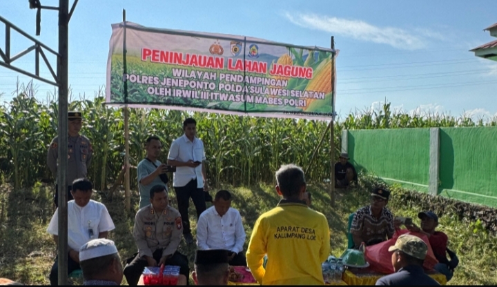 Jeneponto ,Star7 Tv,-26/7/2025- Irwil III Itwasum Polri, Brigjen Pol. Drs. Herukoco, M.Si., melakukan peninjauan langsung ke lahan jagung binaan Polres Jeneponto di Dusun Kalumpang Lompoa, Desa Kalumpang Loe, Kecamatan Arungkeke, Kabupaten Jeneponto, Sulawesi Selatan, pada Jumat (25/7/2025). Kunjungan tersebut merupakan bagian dari pengawasan strategis program ketahanan pangan nasional menuju swasembada 2025.