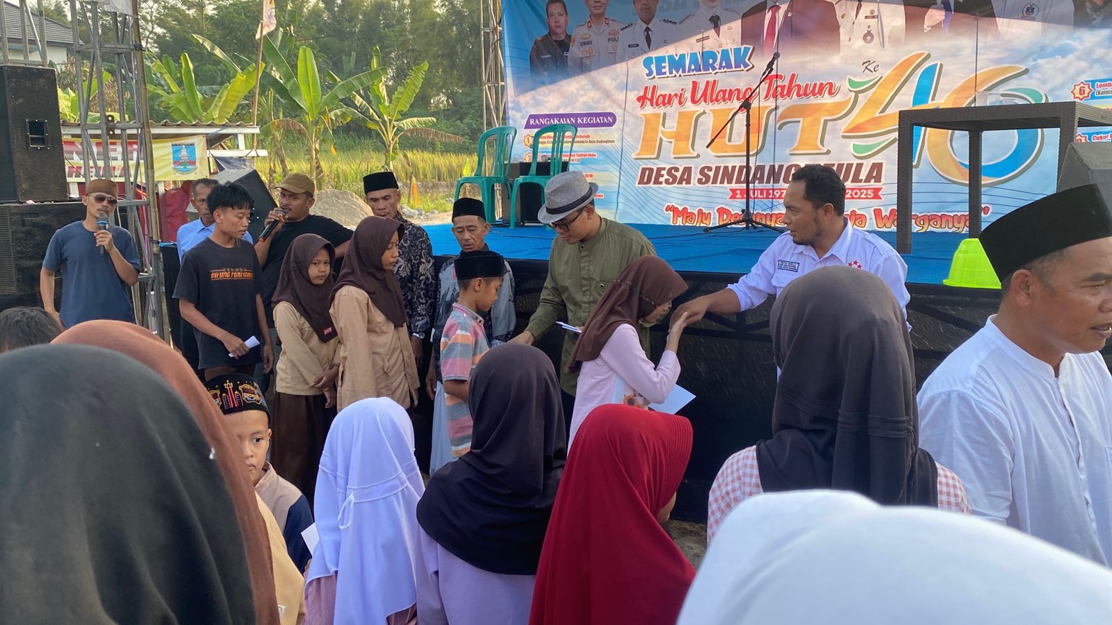 “Alhamdulillah, setiap kegiatan yang kami laksanakan, termasuk di HUT Desa ini, selalu kami anggarkan untuk santunan anak yatim. Jumlah penerima disesuaikan dengan kemampuan desa masing-masing. Selain santunan, kami juga memberikan akses gratis kepada anak-anak yatim untuk bermain di wahana dari jam empat sore sampai menjelang magrib,” ujar Ade.