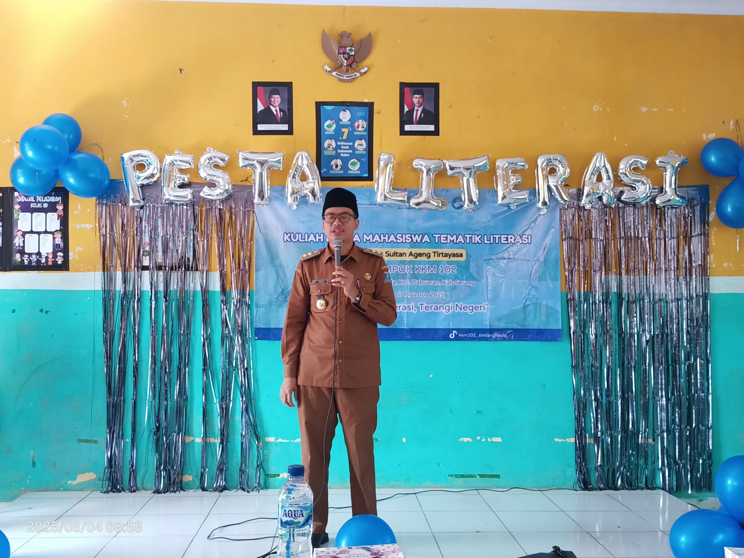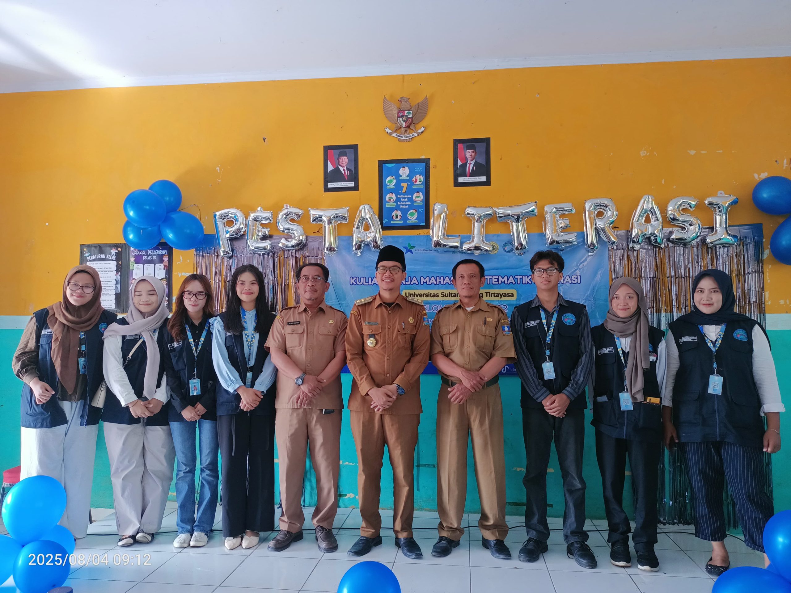 Serang,4-8-2025 Suasana semarak terlihat sejak pagi di halaman SMPN 2 Pabuaran, Desa Sindangheula, dalam kegiatan Pesta Literasi yang diselenggarakan oleh Kelompok Kuliah Kerja Mahasiswa (KKM) 102 Universitas Sultan Ageng Tirtayasa (UNTIRTA), Senin, 4 Agustus 2025.
