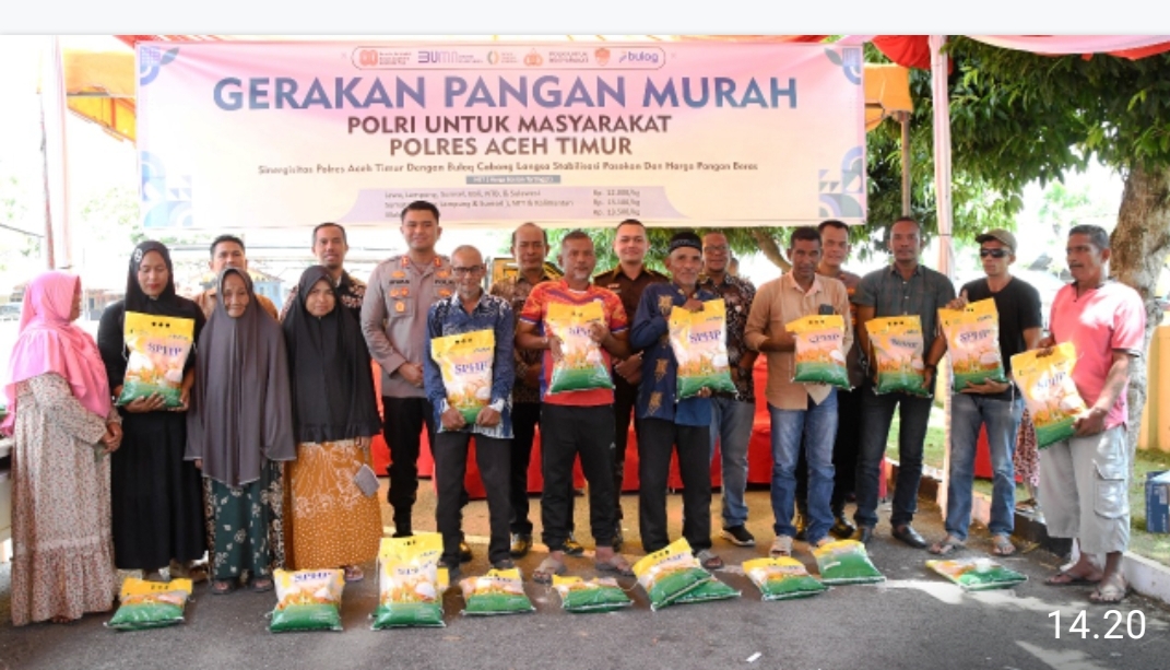 STAR 7TV.COM | Dalam menyambut HUT ke-80 RI, Polres Aceh Timur, Polda Aceh bekerjasama dengan Perum Bulog Kantor Cabang Langsa menggelar Gerakan Pangan Murah (GPM) sebagai respons atas harga beras yang masih melampaui Harga Eceran Tertinggi (HET) di pasaran.