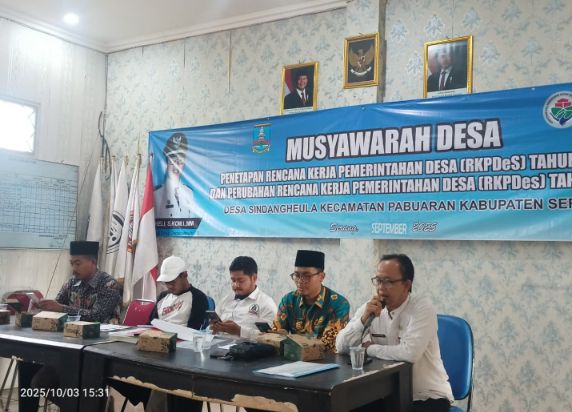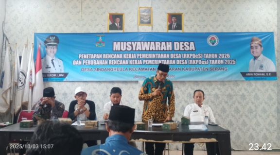 Serang,3-10-2025 Pemerintah Desa Sindangheula bersama Badan Permusyawaratan Desa (BPD) menggelar Musyawarah Desa Khusus (Musdesus) dalam rangka penetapan Rencana Kerja Pemerintah Desa (RKPDes) Perubahan Tahun 2025 serta RKPDes Tahun 2026. Kegiatan tersebut berlangsung di Aula Kantor Desa Sindangheula pada Jumat (3/10/2025).