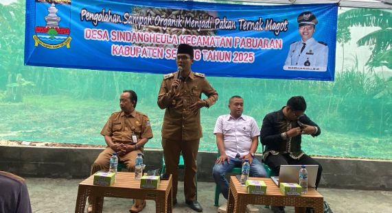 Serang,27-10-2025 Pemerintah Desa Sindangheula, Kecamatan Pabuaran, Kabupaten Serang, menggelar pelatihan pengolahan sampah organik menjadi pakan ternak maggot di Kampung Pesagi Kembang (Beji), Senin (27/10/2025).