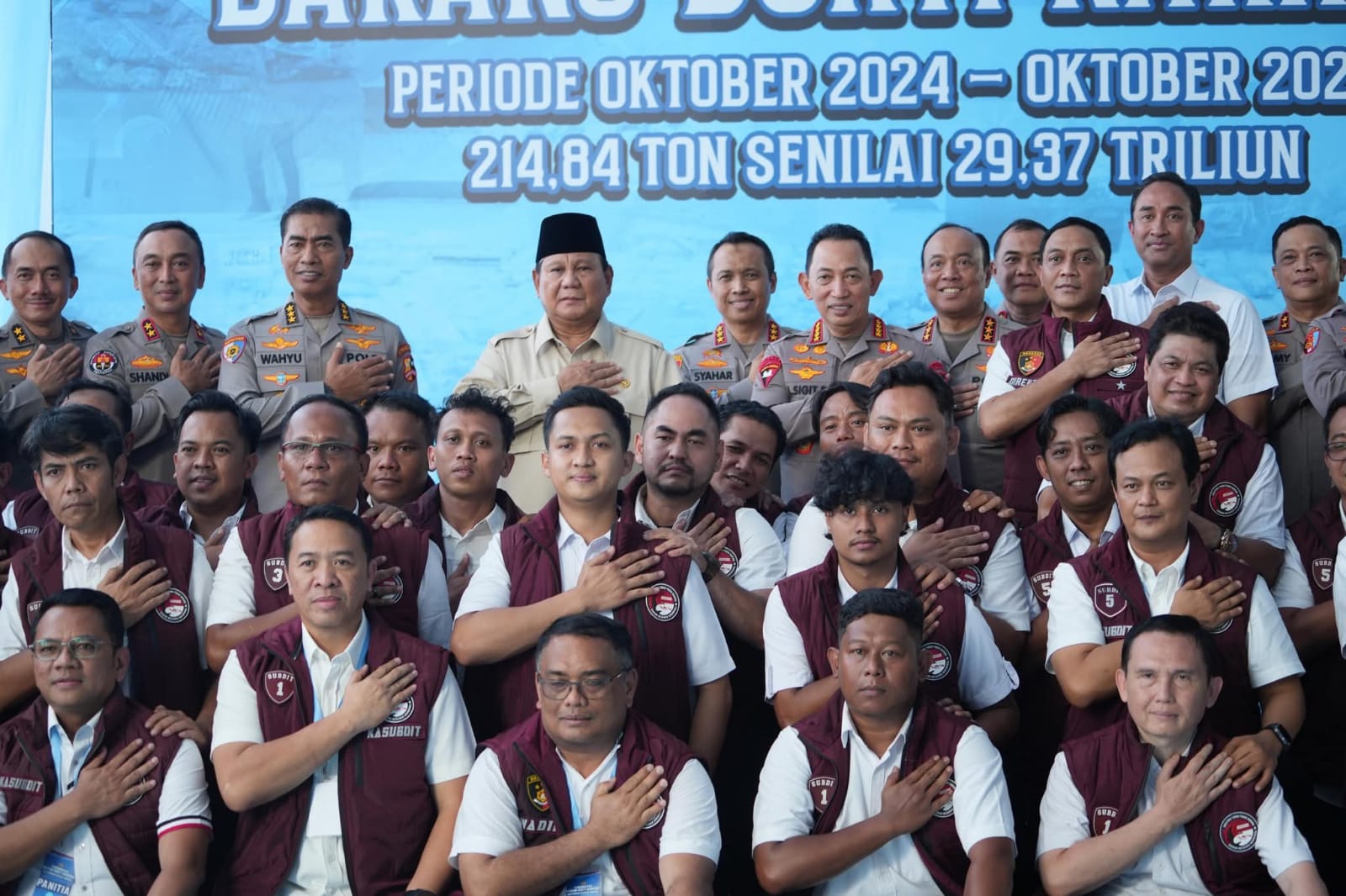 Star7tv.com – Jakarta – Kepala BNN RI, Suyudi Ario Seto, turut menyaksikan pemusnahan barang bukti narkotika sebanyak 214,84 ton dengan nilai taksiran mencapai Rp29,37 triliun, hasil pengungkapan kasus oleh Polri selama satu tahun pemerintahan Presiden Prabowo Subianto. Pemusnahan tersebut dipimpin langsung oleh Presiden RI, didampingi Kapolri Jenderal Listyo Sigit Prabowo, pada Rabu (29/10).