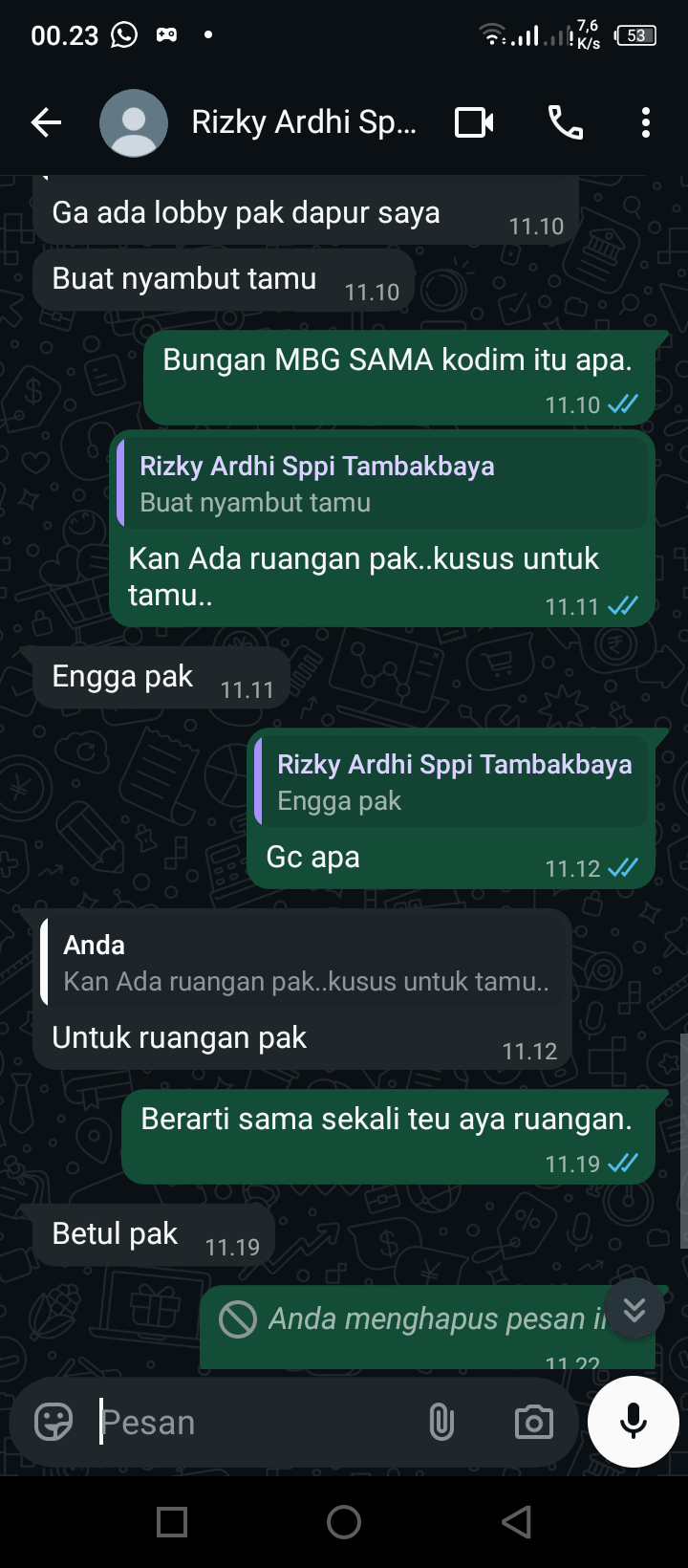 *maaf nanti saya cari dulu suratnya, kata Rizky selaku kepala SPPG tambakbaya 004*
